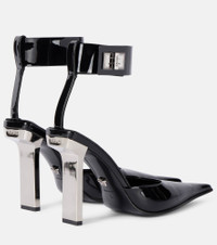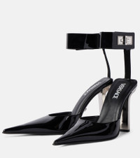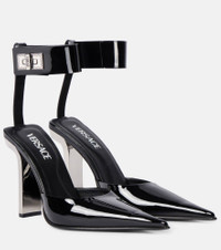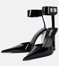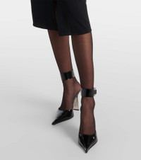 Product Details - Upper: calf leather - Lining: calf leather - Sole: leather insole and sole - Toe shape: pointed toe - Made in Italy - Includes: shoe box, dust bag - Designer color name: Nero-Palladio Lucido - Closure: ankle strap - Item number: P00961256 Size & Fit - Fits slightly small to size - we recommend trying a half size larger - Slightly narrow at the toe - European sizes - 10,5cm-4" heel (size EU 38)