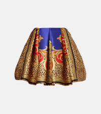 Versace redefines elegance with this pleated satin miniskirt. Lightweight and fluid, it features a vibrant pattern and delicate pleats that create movement and a striking visual impact. Product Details - Material: 66% polyester, 34% silk - Care instructions: dry clean - Made in Italy - Designer color name: Scarlet + Ultramarine - Item color: multicolor - Lining: 75% acetate, 25% silk - Closure: zipped side - Item number: P01080596 Size & Fit - Fits large to size - we recommend trying one size smaller - Non-stretchy fabric - High-waisted - Height of model is 174cm-68.5" and wears a size IT 38