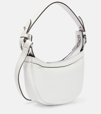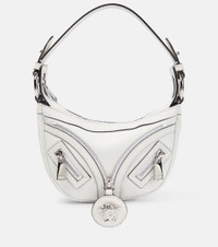 From Versace's archives arrives the Repeat shoulder bag in white with silver-toned hardware. The mini style has a biker-inspired look with multiple zips, a detachable shoulder strap, and a Medusa charm. Product Details - Top handle - Closure: zipped top - Internal details: fabric lining, internal zipped pocket - Comes with dust bag - Made in Italy - Material: leather - Item number: P00778439 Size & Fit - Min. height 11cm-4.5" - Max. height 15cm-6" - Depth 4,5cm-2" - Length of handle 39cm-15.5"