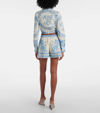 These shorts from Versace deserve a spot in your getaway suitcase. Made from breathable cotton poplin, this pair is complete with the brand's vacation-ready Underwater Barocco print and a logo plaque on an elasticated waistband. Product Details - Material: 100% cotton - Care instructions: dry clean - Made in Italy - Designer color name: Eggshell + Bright Dv Blue - Item color: white, blue - Lining: 100% cupro - Pockets: side slit pockets - Elasticated waistband - Item number: P01069658 Size & Fit - True to size - Elasticated waist - Non-stretchy fabric - Wide-leg - High-waisted - The model seen in the picture is 178cm-5'10" and wearing a size IT 40