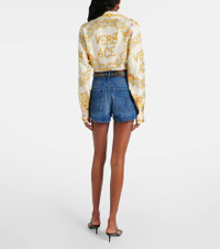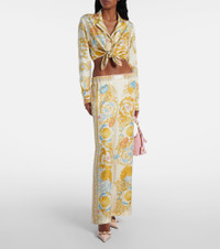 Your next getaway is chic with this crop top from Versace. The ultra-short style ties at the waist and features the brand’s ornate Underwater Barocco print. Product Details - Material: 100% silk - Care instructions: dry clean - Made in Italy - Designer color name: Eggshell+Multicolor - Item color: multicolor - Contains non-textile parts of animal origin - Item number: P01069651 Size & Fit - True to size - Dropped shoulders - Designed for a loose fit - Adjustable at the waist - Non-stretchy fabric - Cropped - The model seen in the picture is 178cm-5'10" and wearing a size IT 40