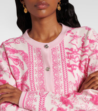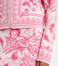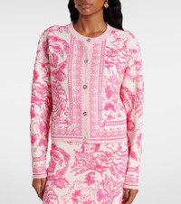 Every day is a getaway with this cardigan from Versace. The design is crafted from thick jacquard modeled after the brand’s ornate Underwater Barocco print. Product Details - Material: 68% cotton, 26% viscose, 6% polyester - Care instructions: dry clean - Made in Italy - Designer color name: Eggshell+Dragonfruit - Item color: pink - Item number: P01069662 Size & Fit - True to size - Dropped shoulders - Straight fit - Slightly stretchy fabric - Falls to the hip - The model seen in the picture is 178cm-5'10" and wearing a size IT 40