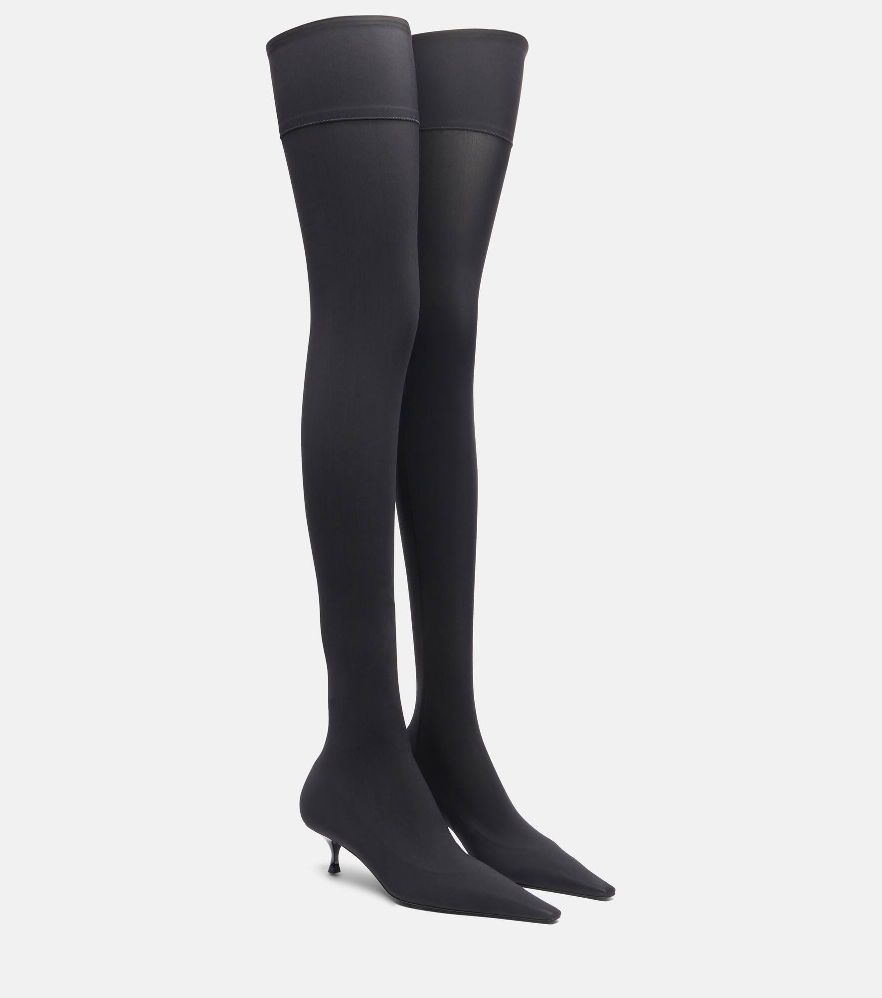 Victoria Beckham's eponymous label centers around chicly understated styles to create a versatile wardrobe. This unique pair blurs the line between boots and hosiery with its iconic pointed-toe silhouette and a jersey structure that climbs up to the thighs. Product Details - Upper: fabric - Lining: leather - Sole: leather insole and sole - Toe shape: pointed toe - Made in Italy - Includes: dust bags, extra heel tips, shoe box - Designer color name: Black - Item color: black - Item number: P01080795 Size & Fit - True to size - Half sizes please take the next size down - European sizes - 4,5cm-2" heel (size EU 38)