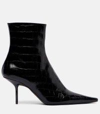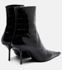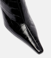 Victoria Beckham’s namesake label takes a bold turn with these ankle boots. Crafted from croc-embossed leather, the design features a sharp pointed toe and rests on 75mm stiletto heels for a sleek, commanding finish. Product Details - Upper: goat leather - Lining: leather - Sole: leather insole and sole - Toe shape: pointed toe - Made in Italy - Includes: shoe box, dust bag - Designer color name: Black - Item color: black - Closure: zipped side - Item number: P01101036 Size & Fit - True to size - Half sizes please take the next size down - European sizes - 7,5cm-3" heel (size EU 38)