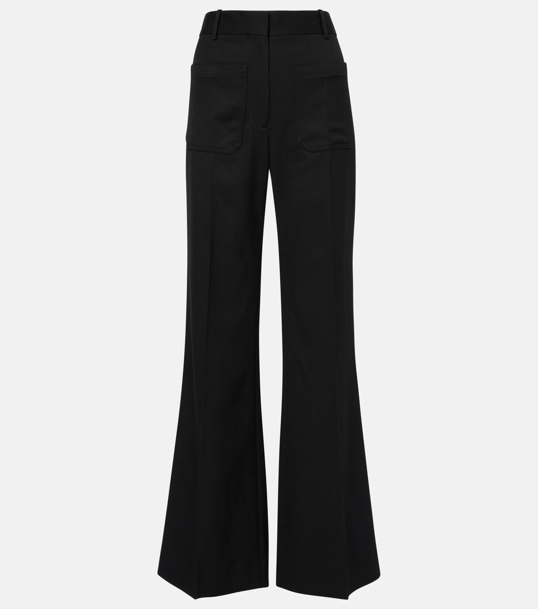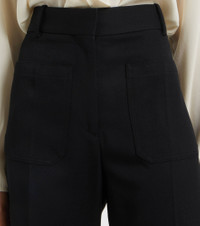 Product Details - Material: 55% polyester, 45% wool - Care instructions: dry clean - Made in Portugal - Designer color name: Black - Closure: zipper fly, button and hook fastenings - Belt loops - Pockets: flap pockets - Item number: P00996635 Size & Fit - True to size - Non-stretchy fabric - Wide-leg - High-waisted - The model in the picture is 185cm-6'1" and wearing a size UK 8