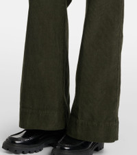 Victoria Beckham's eponymous label centers around chic, understated styles. The Alina jeans are made from pure cotton corduroy and have a mid-rise silhouette with flared legs. Product Details - Material: 100% cotton - Care instructions: machine wash at 30 degrees - Made in Italy - Designer color name: Khaki Garment Dye - Item color: green - Details: 100% leather - High-rise - Fit: wide-leg - Closure: zip and button fastening - Pockets: patch pockets, back pockets - Belt loops - Item number: P01091626 Size & Fit - Fits small to size - we recommend trying one size larger - Non-stretchy fabric - Flared - Mid-rise - The model seen in the picture is 178cm-5'10" and wearing a size 27