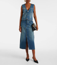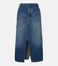 This skirt from Victoria Beckham is made from cotton denim in washed blue. It has a midi length with a front and back slit. Product Details - Material: 100% cotton - Care instructions: machine wash at 30 degrees - Made in Italy - Designer color name: Washed Blue - Item color: blue - Pocket lining: 65% polyester, 35% cotton - Dye: medium - Closure: concealed button placket - Pockets: side slit pockets, back pocket - Belt loops - Item number: P01053781 Size & Fit - True to size - Non-stretchy fabric - The model seen in the picture is 178cm-5'10" and wearing a size UK 8