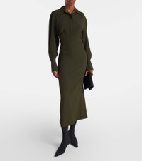 Dark Olive Long Sleeve Polo Collar Midi Dress