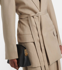 Product Details - Material: 100% wool - Care instructions: dry clean - Made in Portugal - Designer color name: Almond - Lining: 100% viscose - Lining II: 70% cotton, 30% polyamide - Pockets: internal pocket, flap pockets, breast pocket - Attached belt - Closure: single-breasted (two buttons) - Item number: P00996724 Size & Fit - Fits large to size - we recommend trying one size smaller - Shoulder pad inserts - Loose fit, comes with belt - Non-stretchy fabric - Falls below the hip - The model seen in the picture is 178cm-5'10" and wearing a size UK 6