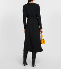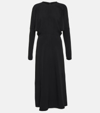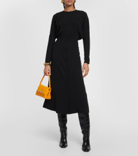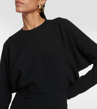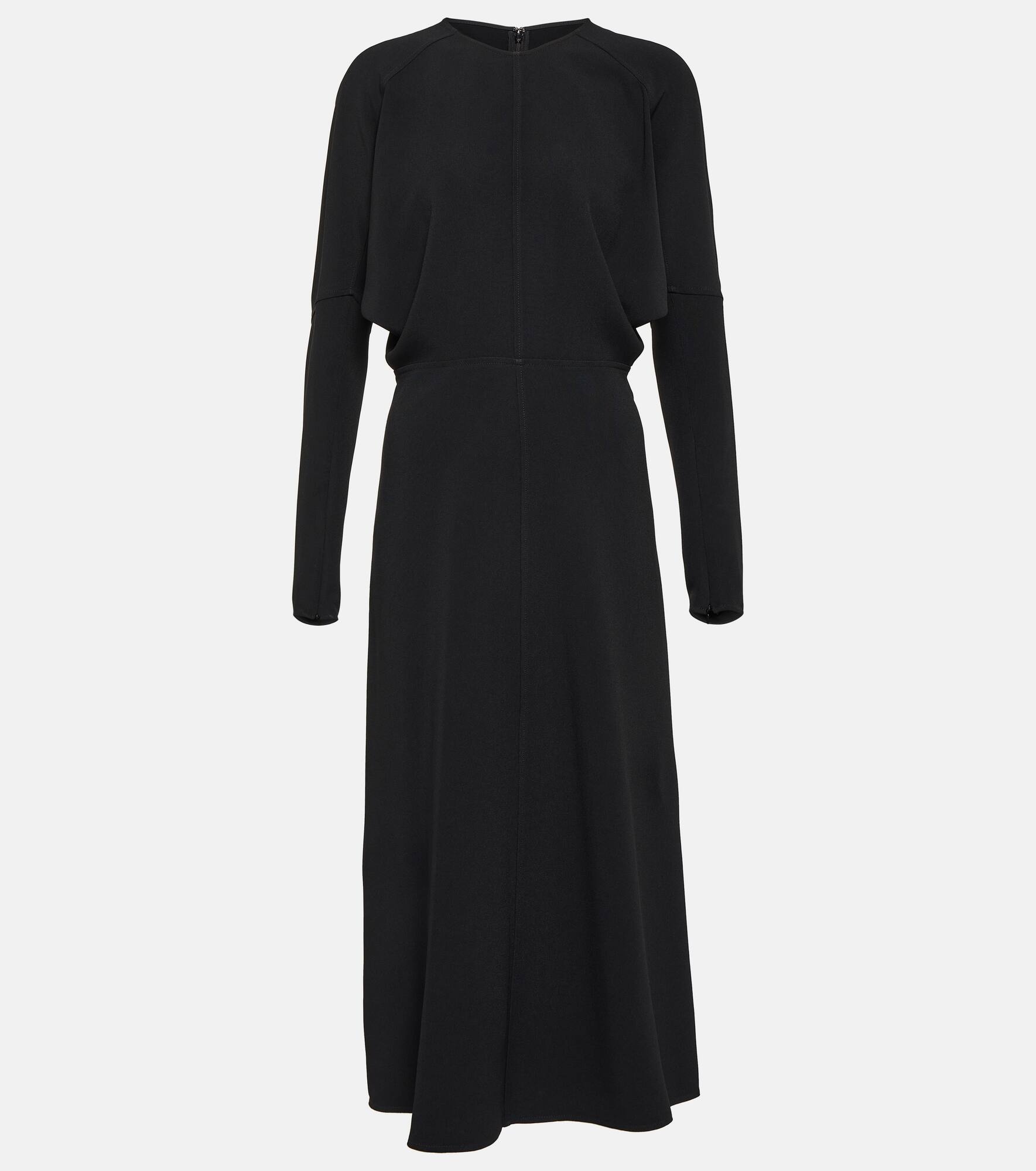 Victoria Beckham presents a sophisticated black midi dress with cady construction. The elegant design comes with concealed zips at the wrists and voluminous long sleeves. Product Details - Material: 3% elastane, 50% viscose, 47% acetate - Made in Portugal - Care instructions: dry clean - Closure: zipped back, invisible zipper - Item number: P00829769 Size & Fit - True to size - Cinched waist - Mid-weight material - The model seen in the picture is 178cm-5'10" and wearing a size UK 8
