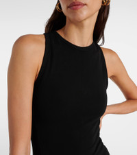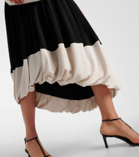 Asymmetric two-tone gathered stretch-jersey midi dress