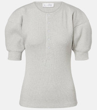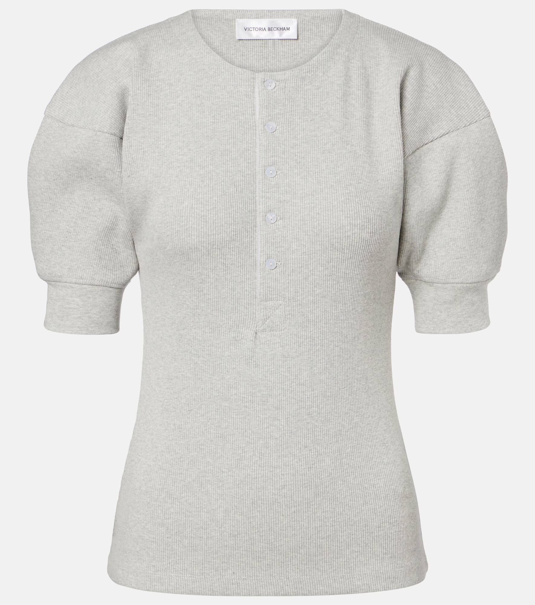 Victoria Beckham's eponymous label centers around chic, understated styles. This Henley shirt is made from a cotton blend and has a mockneck silhouette accented by twist details. Product Details - Material: 95% cotton, 5% elastane - Care instructions: machine wash at 30 degrees - Made in Portugal - Designer color name: Grey Marl - Item color: gray - Trim: 100% cotton - Closure: partially buttoned front - Cuff: ribbed - Item number: P01091642 Size & Fit - True to size - Dropped shoulders - Cinched waist - Stretchy fabric - Falls to the hip - The model seen in the picture is 178cm-5'10" and wearing a size XS