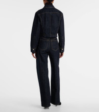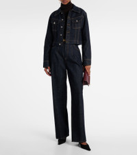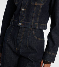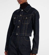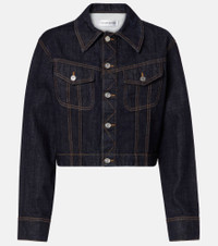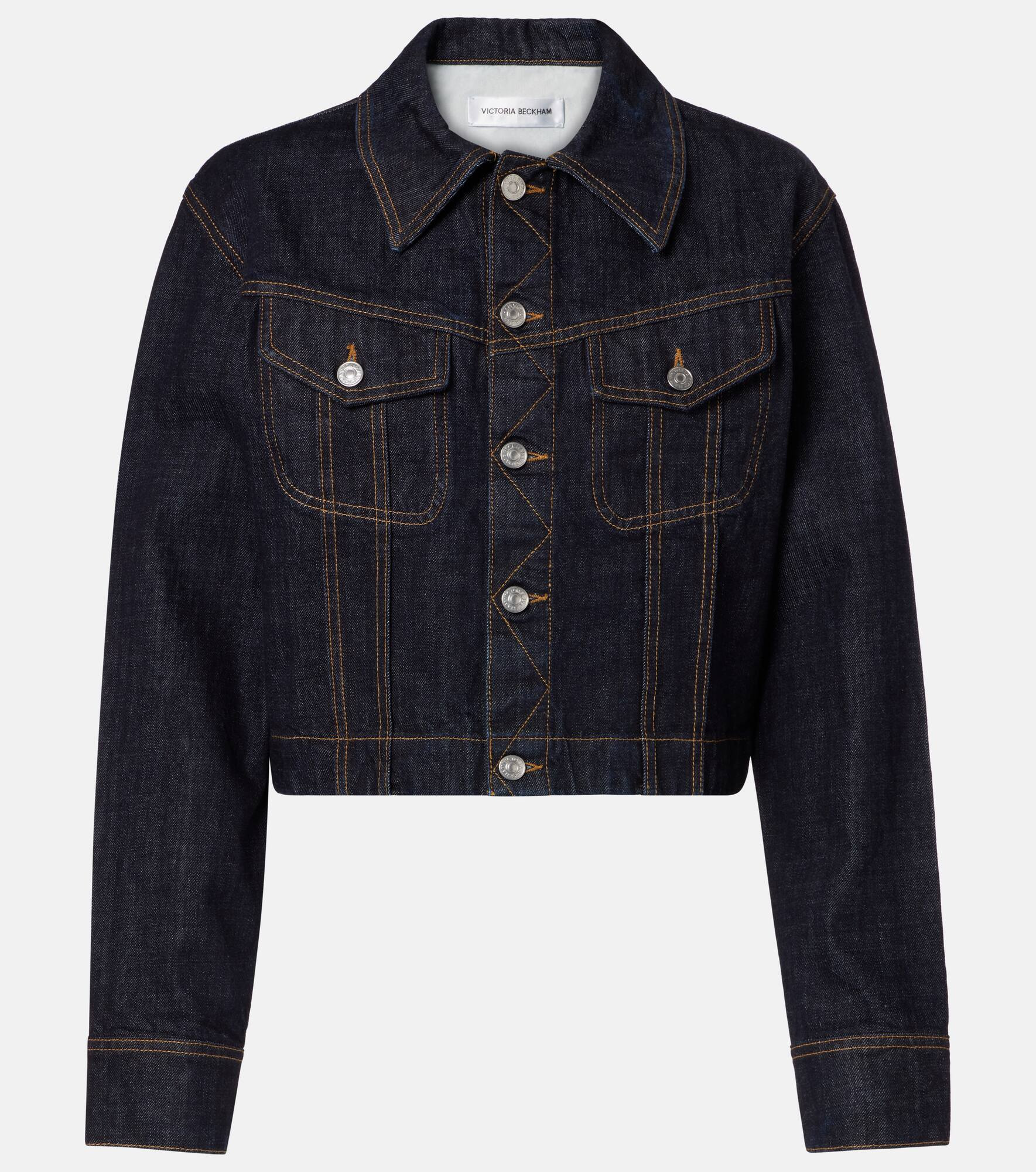Victoria Beckham's eponymous label centers around chicly understated styles to create a versatile wardrobe. This classic denim jacket is defined by a cropped silhouette and a dark blue wash. Product Details - Material: 100% cotton - Care instructions: machine wash at 30 degrees - Made in Italy - Designer color name: Indigo Rinse - Item color: blue - Dye: dark - Closure: buttoned front - Pockets: flap chest pockets - Cuff: buttoned - Item number: P01053779 Size & Fit - True to size - Dropped shoulders - Straight fit - Non-stretchy fabric - Slightly cropped - The model seen in the picture is 178cm-5'10" and wearing a size UK 8