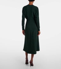 Victoria Beckham's eponymous label centers around chicly understated styles for the modern woman of today. Made from fluid cady, the Dolman midi dress features a flared silhouette, complete with zip detailing at the long sleeves. Product Details - Material: 50% viscose, 47% acetate, 3% elastane - Care instructions: dry clean - Made in Portugal - Designer color name: Dark Pine - Item color: green - Closure: zipped back - Sleeves: raglan - Item number: P01053849 Size & Fit - Fits small to size - we recommend trying one size larger - Cinched waist - Non-stretchy fabric - The model seen in the picture is 178cm-5'10" and wearing a size UK 10