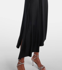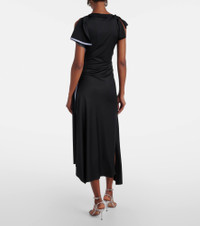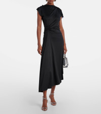 Victoria Beckham's eponymous label centers around chicly understated styles to create a versatile wardrobe. This midi dress features an asymmetric hemline and elegant draping. Product Details - Material: 90% polyester, 10% elastane - Care instructions: dry clean - Made in Portugal - Designer color name: Black - Item color: black, blue - Side slits - Hem: uneven - Item number: P01053805 Size & Fit - True to size - Cinched waist - Stretchy fabric - The model seen in the picture is 178cm-5'10" and wearing a size UK 8