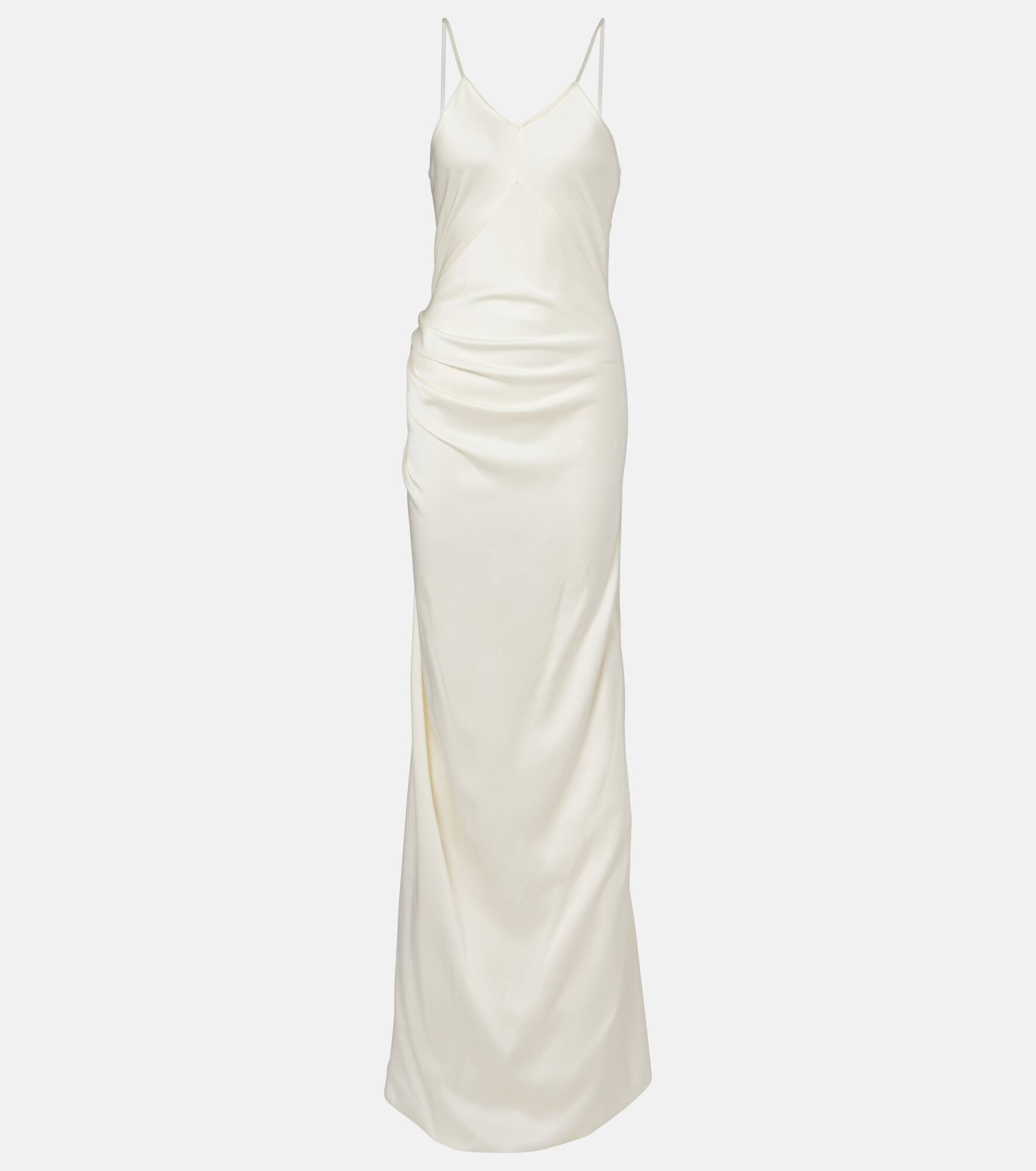 Victoria Beckham's eponymous label offers chic and understated styles to create a versatile wardrobe. This self-tie slip dress is made from crepe satin with elegant draping properties. Product Details - Material: 71% acetate, 29% viscose - Care instructions: dry clean - Made in the UK - Designer color name: Ivory - Item color: white - Self-tie back - Item number: P01044241 Size & Fit - True to size - Low back - Cinched waist - Non-stretchy fabric - The model seen in the picture is 178cm-5'10" and wearing a size UK 8