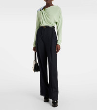 draped long-sleeve top