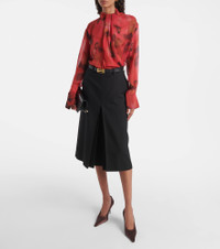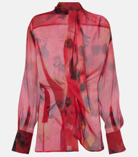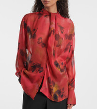 This blouse from Victoria Beckham showcases the brand's affinity for unparalleled sophistication. Made from ultra-soft silk, the printed style features draping for an elegant finish. Product Details - Material: 100% silk - Care instructions: dry clean - Made in Portugal - Designer color name: Raspberry - Item color: red - Material II: 100% polyester - Closure: zipped side, button fastening - Cuff: one button - Unlined - Item number: P01053938 Size & Fit - True to size - Dropped shoulders - Semi-sheer - Designed for a loose fit - Non-stretchy fabric - Falls below the hip - The model seen in the picture is 178cm-5'10" and wearing a size UK 8