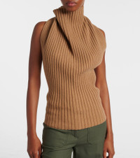 Victoria Beckham's eponymous label centers around chicly understated styles to create a versatile wardrobe. Made from wool-blend material, this top is a ribbed-knit piece with draped detailing. Product Details - Material: 80% wool, 20% polyamide - Care instructions: dry clean - Made in Italy - Designer color name: Dark Caramel - Item color: beige - Item number: P01091669 Size & Fit - True to size - Low back - Cinched waist - Stretchy fabric - Falls to the hip - The model seen in the picture is 178cm-5'10" and wearing a size XS