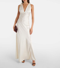 Gathered Shoulder Floor-Length Cami Gown In Ivory