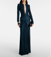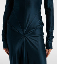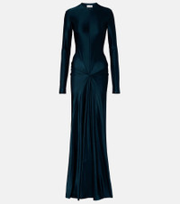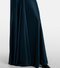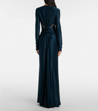 Make an impression during special events in this gown from Victoria Beckham. Made from lustrous satin, this long-sleeved gown is complete with elegant gathered detailing at the center. Product Details - Material: 90% viscose, 10% elastane - Care instructions: dry clean - Made in Portugal - Designer color name: Dark Teal - Item color: green - Closure: concealed zipped front - Item number: P01122454 Size & Fit - True to size - Cinched waist - Slightly stretchy fabric - Height of model is 178cm-70" and wears a size UK 8