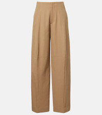 Victoria Beckham's eponymous label centers around chicly understated styles to create a versatile wardrobe. These pants come in a wide-leg silhouette that sits high on the waist and are characterized by distinctive curved seams at the front and back of the legs. Product Details - Material: 100% virgin wool - Care instructions: dry clean - Made in Lithuania - Designer color name: Dark Camel - Item color: brown - Pocket lining: 70% cotton, 30% polyamide - Closure: zipper, hook fastening - Pockets: side slit pockets - Item number: P01091729 Size & Fit - Fits large to size - we recommend trying one size smaller - Non-stretchy fabric - Wide-leg - High-waisted - The model seen in the picture is 178cm-5'10" and wearing a size UK 6