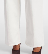 Victoria Beckham’s eponymous label centers around chicly understated styles to create a versatile wardrobe – these jeans feature a high-rise waist and straight-leg cut, offering a timeless shape with modern polish. Product Details - Material: 100% cotton - Care instructions: machine wash at 30 degrees - Made in Italy - Designer color name: Washed White - Item color: white - Pocket lining: 65% polyester, 35% cotton - Trim: 100% leather - Closure: zip and button fastening - Contains non-textile parts of animal origin - High-rise - Fit: wide-leg - Item number: P01053796 Size & Fit - True to size - Non-stretchy fabric - Straight leg - High-rise - The model seen in the picture is 178cm-5'10" and wearing a size 26