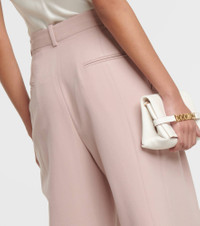 Product Details - Material: 55% polyester, 45% wool - Care instructions: dry clean - Made in Portugal - Designer color name: Rose Quartz - Lining: 70% cotton, 30% polyamide - Closure: zipper fly, button and hook fastenings - Pockets: side slit pockets, back pockets - Item number: P00882544 Size & Fit - Fits large to size - we recommend trying one size smaller - Non-stretchy fabric - Wide-leg - High-waisted - The model seen in the picture is 178cm-5'10" and wearing a size UK 6