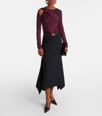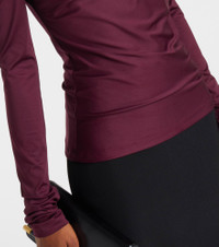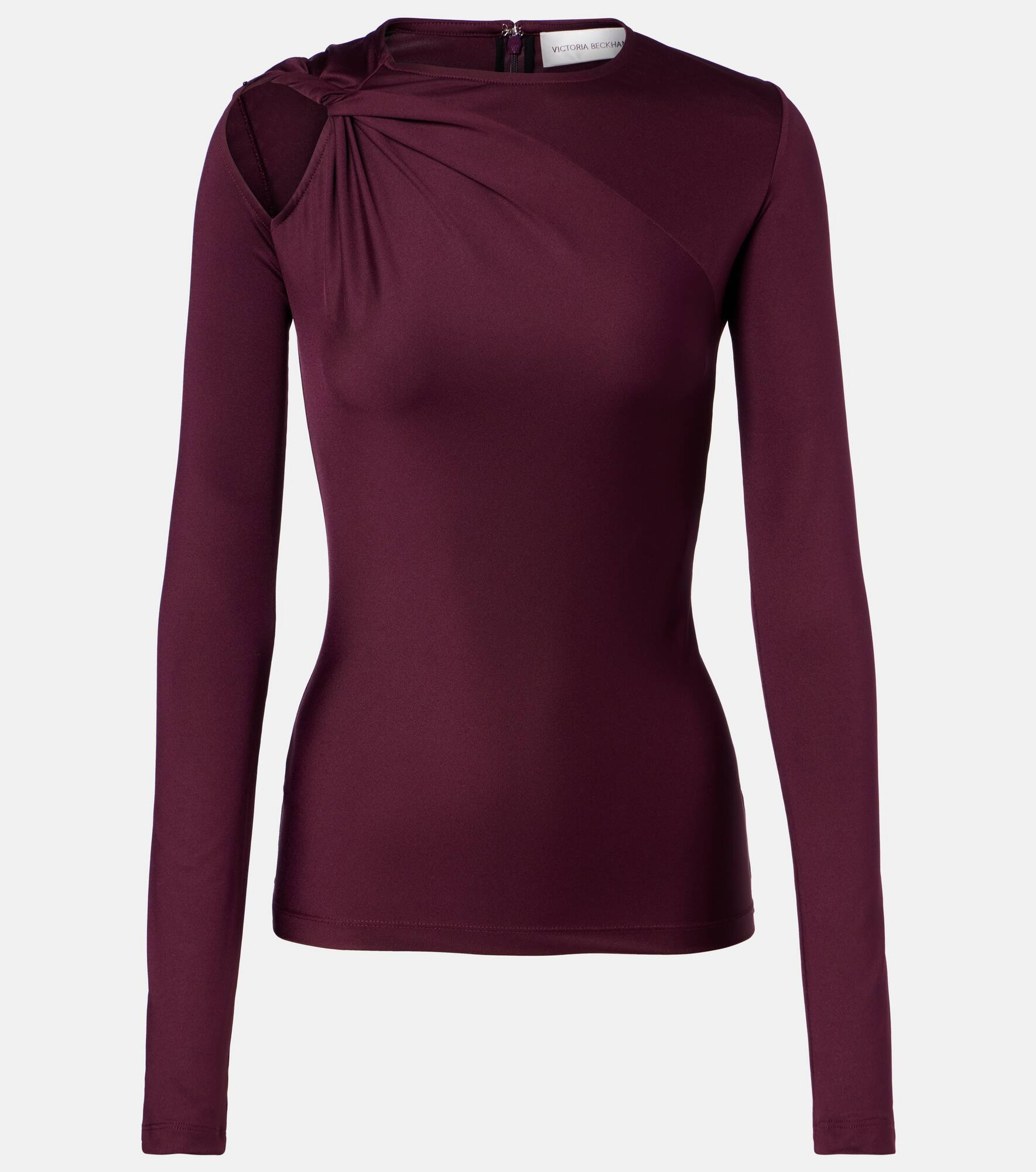 Victoria Beckham's eponymous label centers around chic, understated styles. This jersey top features a subtle twist detail at the sleeves. Product Details - Material: 90% polyester, 10% elastane - Care instructions: dry clean - Made in Portugal - Designer color name: Merlot - Item color: burgundy - Closure: invisible zipper - Item number: P01091643 Size & Fit - True to size - Fitted - Stretchy fabric - Falls to the hip - The model seen in the picture is 178cm-5'10" and wearing a size UK 8