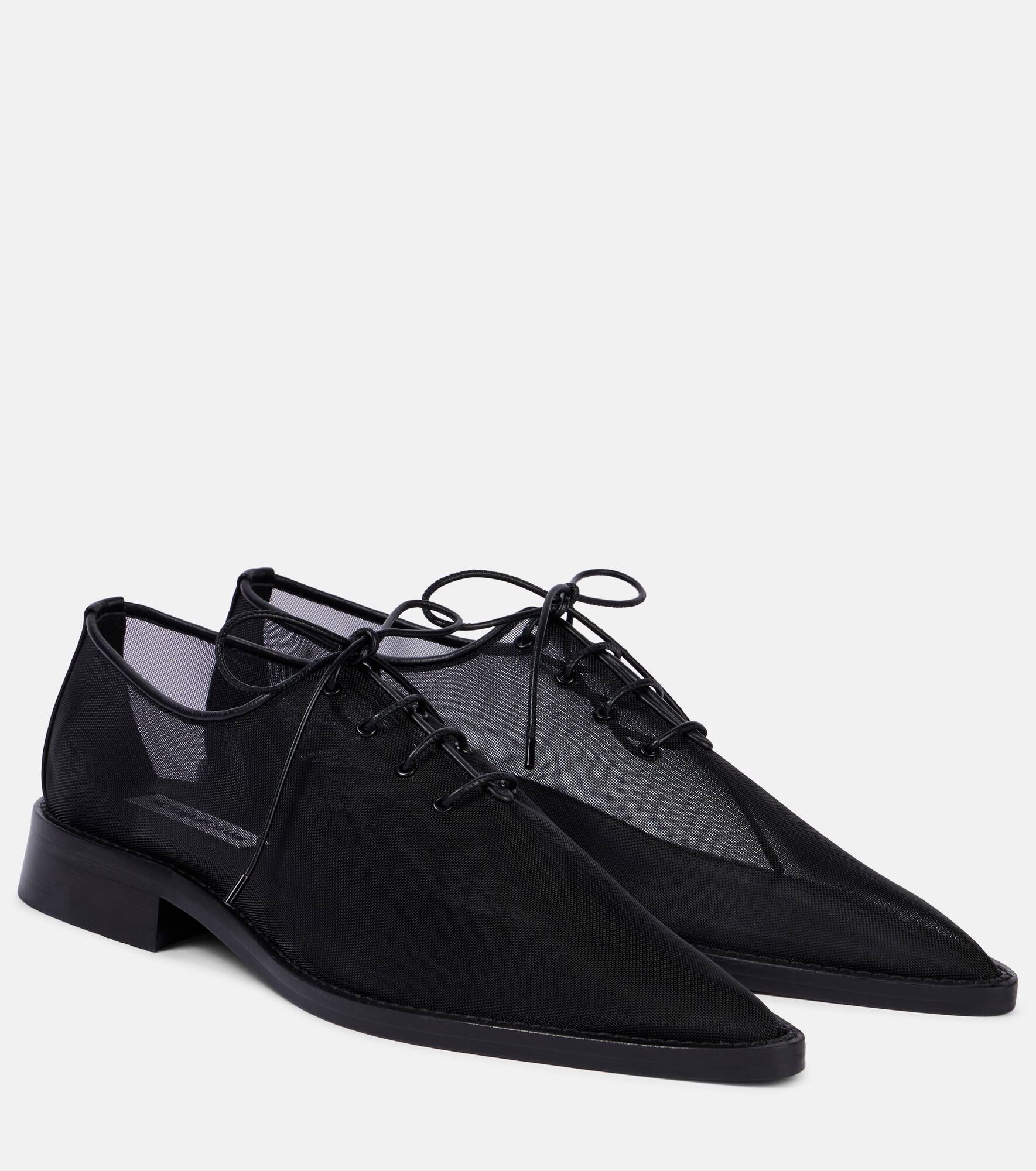 These flats from Victoria Beckham feature a mesh upper and sleek pointed toes. Their lace-up closures add a refined touch to the elegant, modern design. Product Details - Upper: fabric - Lining: fabric - Sole: leather insole, leather and rubber sole - Toe shape: pointed toe - Made in Italy - Includes: shoe box, dust bag - Designer color name: Black - Item color: black - Closure: lace-up - Trim: leather - Item number: P01018079 Size & Fit - True to size - Best fit for narrow feet - European sizes - 2,5cm-1" heel (size EU 38)