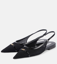 Product Details - Upper: fabric - Lining: fabric - Sole: leather insole and sole - Toe shape: pointed toe - Made in Italy - Includes: shoe box, dust bag - Designer color name: Black - Trim: leather - Closure: elasticated strap - Hardware color: gold - Item number: P01020883 Size & Fit - True to size - European sizes
