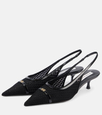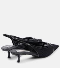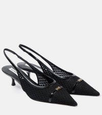Leather-trimmed mesh slingback pumps