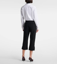 Victoria Beckham's eponymous label centers around chicly understated styles to create a versatile wardrobe. These capri pants feature buttoned cuffs and a silver-toned logo plaque at the waist. Product Details - Material: 45% polyester, 36% wool, 16% polyamide, 3% elastane - Care instructions: dry clean - Made in Lithuania - Designer color name: Black - Item color: black - Lining: 70% cotton, 30% polyamide - Closure: zip and button fastening - Cuff: buttoned - Cropped - Item number: P01053948 Size & Fit - True to size - Non-stretchy fabric - Straight leg - The model seen in the picture is 178cm-5'10" and wearing a size UK 8