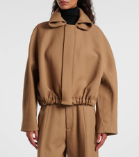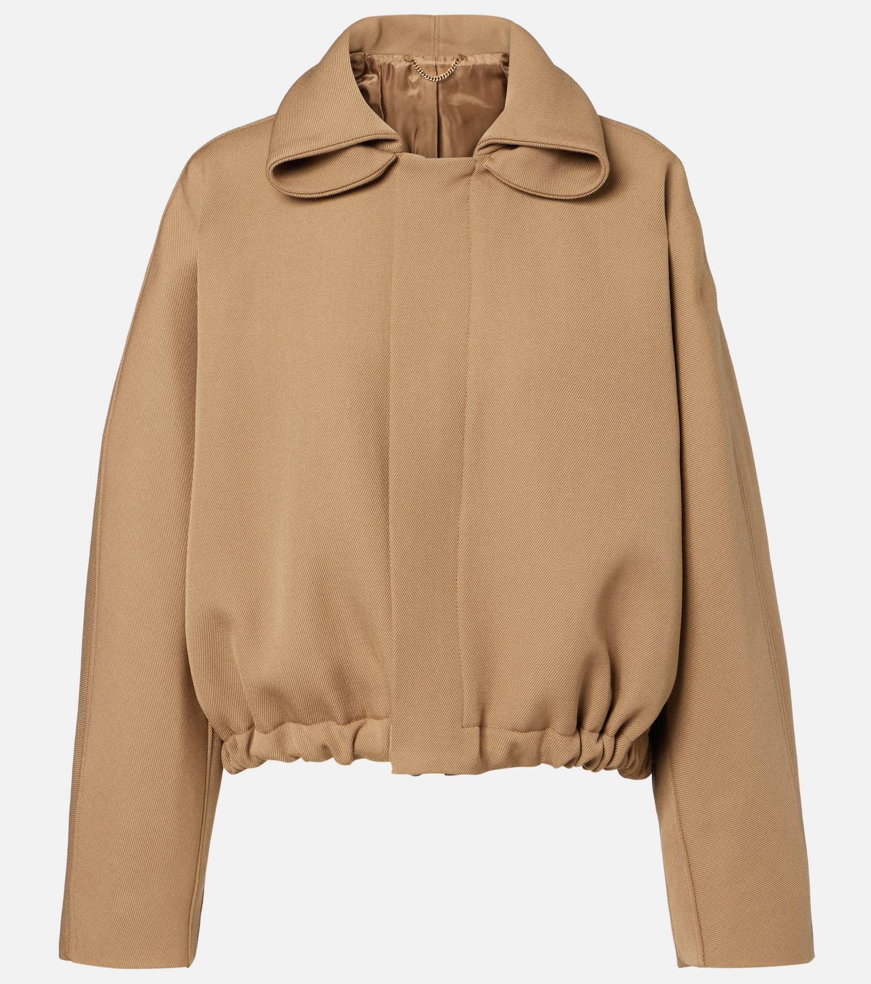 Victoria Beckham's eponymous label centers around chicly understated styles to create a versatile wardrobe. Cut to a relaxed, oversized silhouette, this jacket is crafted from virgin wool and features a signature roll-neck design and an elasticated waistband. Product Details - Material: 100% virgin wool - Care instructions: dry clean - Made in Lithuania - Designer color name: Dark Camel - Item color: beige - Lining: 100% viscose - Hardware color: gold - Closure: zipper, snap-button fastenings - Elasticated drawstring waist - Pockets: side slit pockets, internal pocket - Fully lined - Item number: P01091782 Size & Fit - Fits large to size - we recommend trying one size smaller - Designed for a loose fit - Elasticated hem - Non-stretchy fabric - Slightly cropped - The model seen in the picture is 178cm-5'10" and wearing a size UK 6