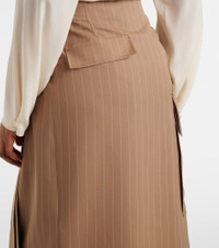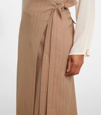 Tie-detailed pinstriped wool-twill midi wrap skirt