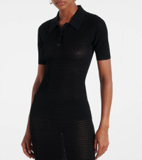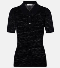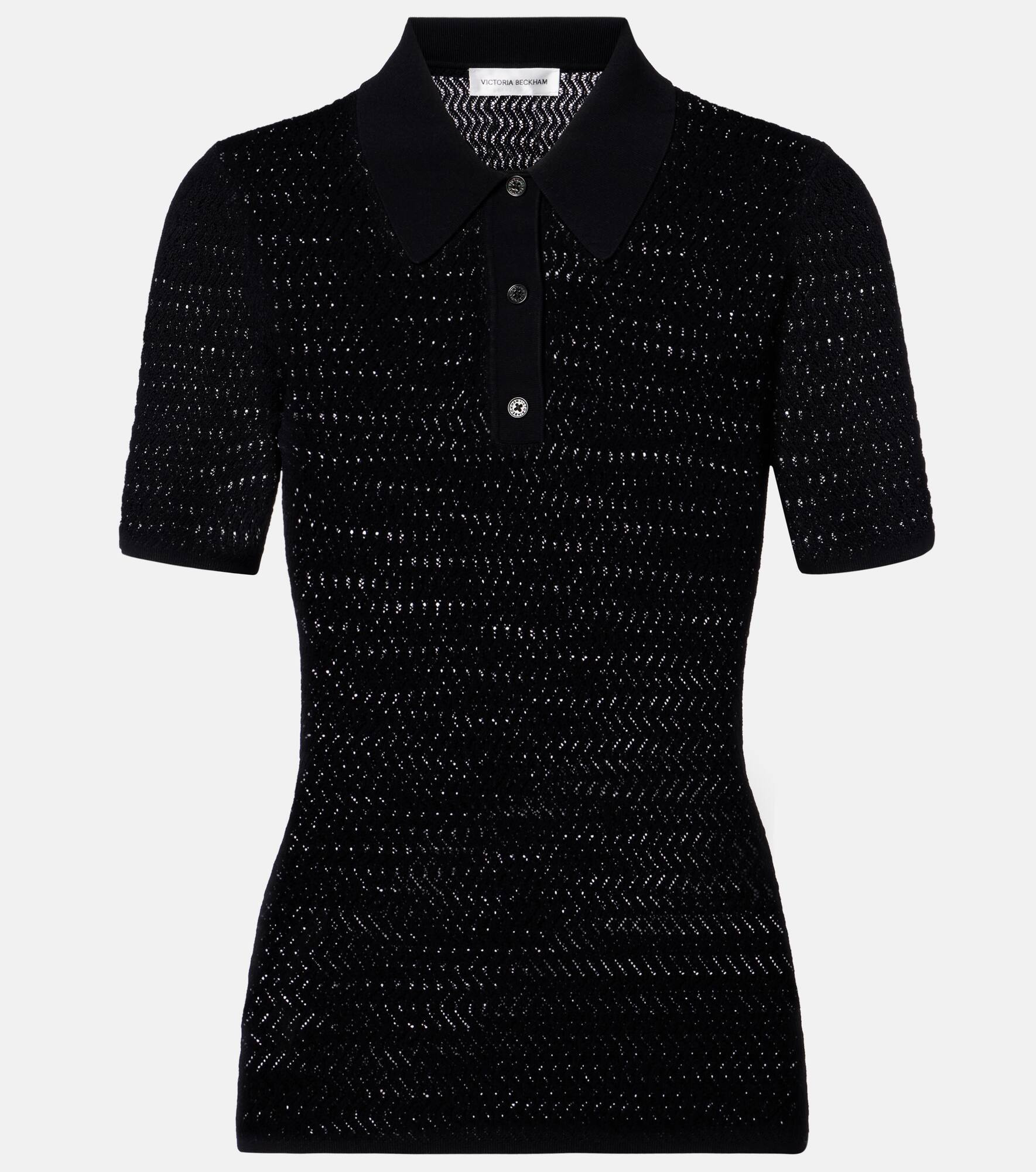 Victoria Beckham's eponymous label centers around chicly understated styles to create a versatile wardrobe. Bring texture to your looks with this pointelle polo shirt, coming in a fitted short-sleeved silhouette. Product Details - Material: 83% viscose, 17% polyamide - Care instructions: dry clean - Made in China - Designer color name: Black - Item color: black - Trim: 66% viscose, 32% polyamide, 2% elastane - Item number: P01053835 Size & Fit - True to size - Semi-sheer - Fitted - Stretchy fabric - Falls to the hip - The model seen in the picture is 178cm-5'10" and wearing a size XS