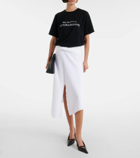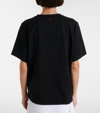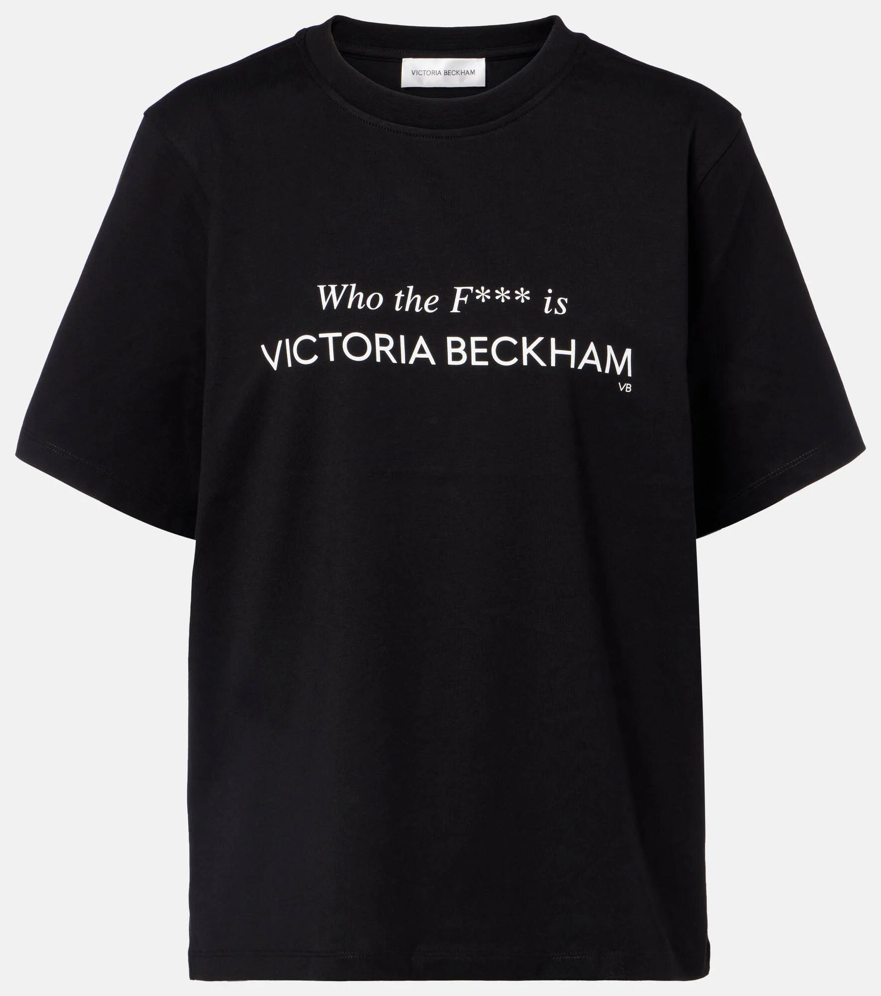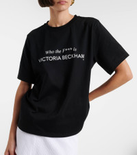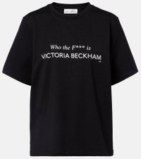 Victoria Beckham's eponymous label centers around chic, understated styles. This minimalist T-shirt will effortlessly slot into your everyday rotation with its soft cotton jersey construction, slightly oversized fit, and irreverent print. Product Details - Material: 100% cotton - Care instructions: machine wash at 30 degrees - Made in Portugal - Color: black - Designer color name: Black - Item color: black - Trim: 95% cotton, 5% elastane - Item number: P01122493 Size & Fit - True to size - Dropped shoulders - Oversized - Slightly stretchy fabric - Falls to the hip - The model seen in the picture is 178cm-5'10" and wearing a size XS
