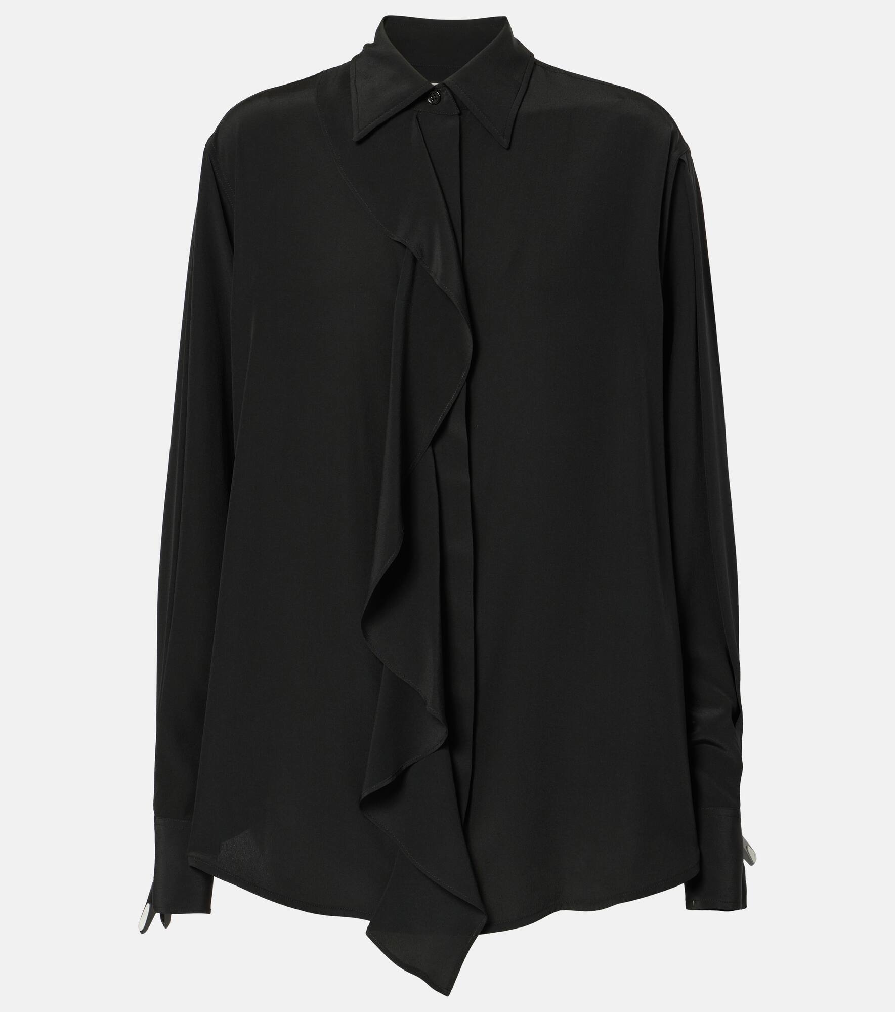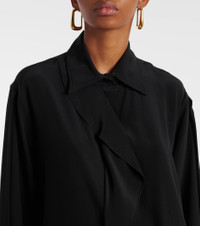 Product Details - Material: 100% silk - Care instructions: dry clean - Made in Portugal - Designer color name: Black - Closure: concealed buttoned front - Sleeves: long-sleeved - Buttoned sleeves - Item number: P00953546 Size & Fit - True to size - Dropped shoulders - Designed for a loose fit - Non-stretchy fabric - Falls below the hip - The model seen in the picture is 178cm-5'10" and wearing a size UK 8