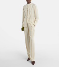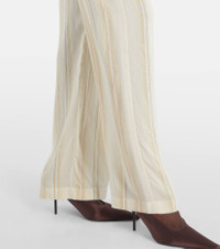 Center your sophisticated everyday looks around pieces like these pants from Victoria Beckham. Made with a touch of silk for extra softness, this pair is complete with a striped pattern and an elasticated waistband for optimal comfort. Product Details - Material: 69% viscose, 31% silk - Care instructions: dry clean - Made in Turkey - Designer color name: Pistachio / Pink - Item color: beige, pink - Pocket lining: 100% cupro - Elasticated waistband - Pockets: slit pockets - Item number: P01053943 Size & Fit - True to size - Elasticated waist - Non-stretchy fabric - Wide-leg - The model seen in the picture is 178cm-5'10" and wearing a size UK 8