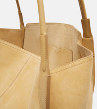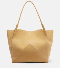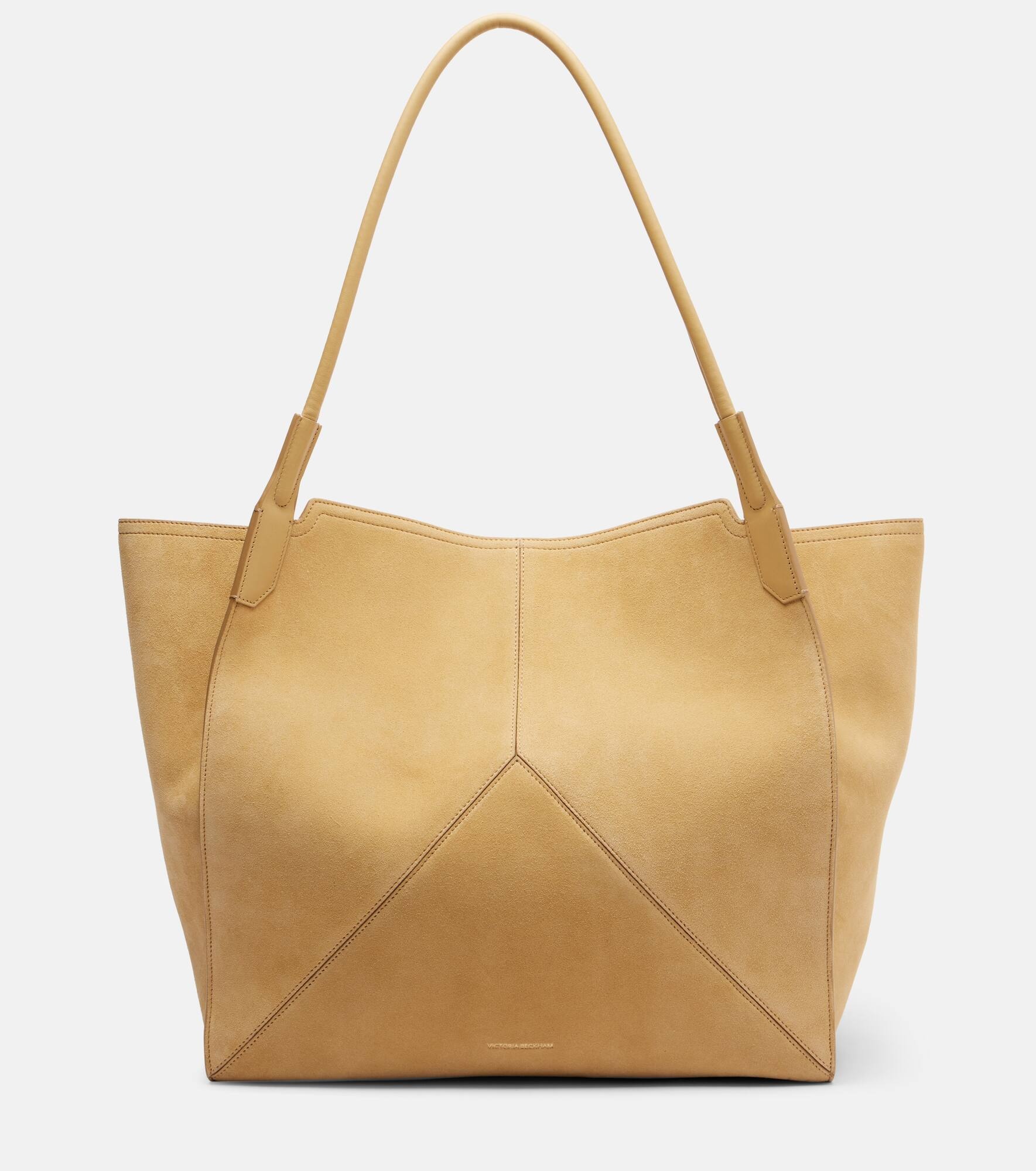 Victoria Beckham's eponymous label centers around chicly understated styles to create a versatile wardrobe. Made in Italy, this suede shoulder bag features a spacious silhouette with an internal slot pocket and long straps for easy carry. Product Details - Material: leather (suede) - Lining: leather - Made in Italy - Designer color name: Sand - Item color: beige - Internal details: internal slot pocket - Shoulder straps - Item number: P01042403 Size & Fit - Height 38cm-15" - Width 38cm-15" - Depth 17cm-6.5" - Length of handles 72cm-28.5"