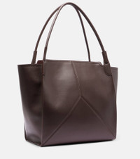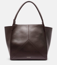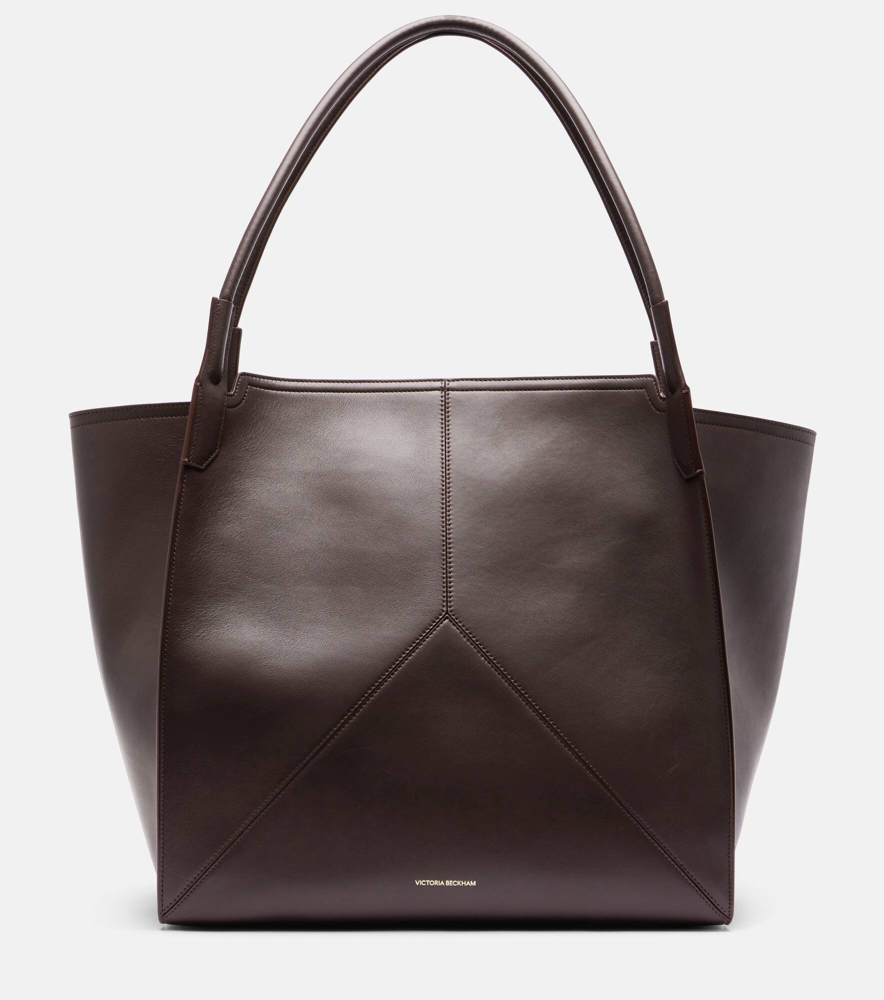 This Victoria Beckham tote bag carries both the name and the bold personality of its founder. Crafted from leather, this Large design features V-shaped stitching at the front and gold-toned logo lettering at the front. Product Details - Material: leather - Lining: unlined - Made in Italy - Designer color name: Burgundy - Item color: burgundy - Top handles - Closure: open top - Internal details: single compartment, internal slot pocket - Protective feet - Includes: dust bag - Item number: P01042416 Size & Fit - Height 38cm-15" - Width 51cm-20" - Depth 17cm-6.5" - Length of handles 71cm-28"