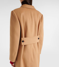 This sophisticated coat from Victoria Beckham is expertly crafted from soft wool and cashmere. The double-breasted design features a classic collar, peak lapels with topstitching, flap pockets, and structured shoulder pads. Product Details - Material: 95% wool, 5% cashmere - Care instructions: dry clean - Made in China - Designer color name: Camel - Item color: brown - Lining: 100% viscose - Closure: double-breasted - Peak lapel - Shoulder pads - Pockets: breast pocket, flap pockets - Detachable band - Vent: single - Partially lined - Item number: P01053841 Size & Fit - True to size - Shoulder pad inserts - Designed for a loose fit - Non-stretchy fabric - The model seen in the picture is 178cm-5'10" and wearing a size UK 8