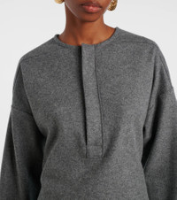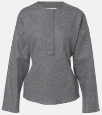 Victoria Beckham's eponymous label centers around chicly understated styles to create a versatile wardrobe. Minimalist and versatile, this classic Henley shirt is cut from a supremely soft blend of wool and cashmere. Product Details - Material: 90% wool, 10% cashmere - Care instructions: dry clean - Made in Portugal - Designer color name: Mid Grey Melange - Item color: gray - Closure: concealed button placket - Side slits - Item number: P01091735 Size & Fit - True to size - Dropped shoulders - Cinched waist - Non-stretchy fabric - Falls below the hip - The model seen in the picture is 178cm-5'10" and wearing a size UK 8
