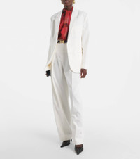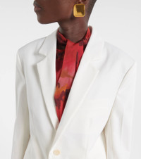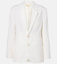 This blazer from Victoria Beckham is primed for your timeless tailoring collection. Made from a wool blend, the style is complete with notched lapels, shoulder pads, and multiple pockets. Product Details - Material: 50% wool, 50% polyester - Care instructions: dry clean - Made in Portugal - Designer color name: Ivory - Item color: white - Lining: 52% viscose, 48% cotton - Closure: single-breasted (two buttons) - Notched lapel - Shoulder pads - Cuff: three buttons - Vent: double - Pockets: breast pocket, jetted, internal pocket - Fully lined - Item number: P01053905 Size & Fit - Fits large to size - we recommend trying one size smaller - Shoulder pad inserts - Designed for a loose fit - Non-stretchy fabric - Falls below the hip - The model seen in the picture is 178cm-5'10" and wearing a size UK 6