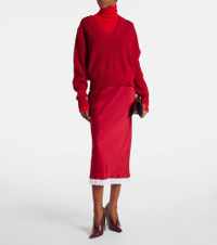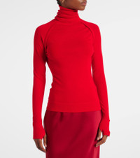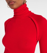 Victoria Beckham's eponymous label centers around chicly understated styles to create a versatile wardrobe. Elegant and minimalist, this turtleneck sweater is knitted from fine wool threads and finished with artfully curved trims along the shoulders. Product Details - Material: 100% wool (merino wool) - Care instructions: dry clean - Made in China - Designer color name: Bright Rose - Item color: red - Trim: 83% wool (merino wool), 15% polyamide, 2% elastane - Item number: P01053834 Size & Fit - True to size - Fitted - Stretchy fabric - Slightly cropped - The model seen in the picture is 178cm-5'10" and wearing a size XS