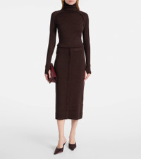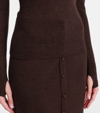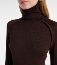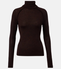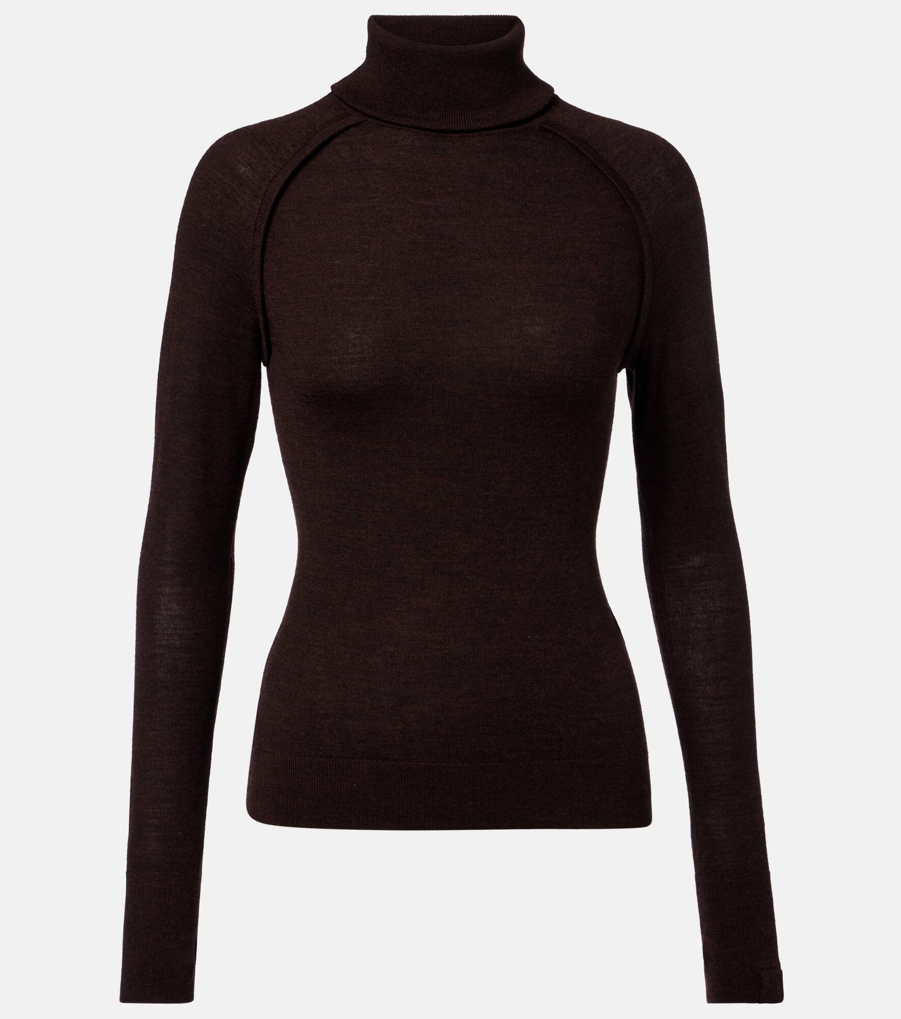 Victoria Beckham's eponymous label centers around chicly understated styles to create a versatile wardrobe. Elegant and minimalist, this turtleneck sweater is knitted from fine wool threads and finished with artfully curved trims along the shoulders. Product Details - Material: 100% wool (merino wool) - Care instructions: dry clean - Made in China - Designer color name: Dark Chocolate - Item color: brown - Trim: 83% wool (merino wool), 15% polyamide, 2% elastane - Item number: P01053832 Size & Fit - True to size - Fitted - Stretchy fabric - Slightly cropped - The model seen in the picture is 178cm-5'10" and wearing a size XS