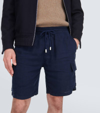 Vilebrequin’s Baie Bermuda shorts are a timeless summer staple. Made from breathable linen, the navy design has a casual fit with an elasticated drawstring waistband and cargo pockets as well as a VELCRO® flap back pocket. Product Details - Material: 100% linen - Care instructions: machine wash at 30 degrees - Made in Morocco - Designer color name: Bleu Marine - Pockets: side slit pockets, back pocket, cargo pockets - Elasticated drawstring waist - Item number: P00878251 Size & Fit - True to size - Elasticated waist - Adjustable at the waist - Mid-weight material - Wide-leg - Inseam length approx: 23cm-9" - The model in the picture is 185cm-6'1" and wearing a size M