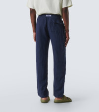 With a relaxed-fit, Vilebrequin’s Pacha linen pants sport an elasticated waistband and are finished with the label’s patch motif at the back. Product Details - Elasticated drawstring waist - Material: 100% linen - Designer color name: Bleu Marine - Care instructions: dry clean - Item number: P00440423 Size & Fit - True to size - Elasticated waist - Adjustable at the waist - Non-stretchy fabric - Wide-leg - Inseam length approx: 83cm-32.5" - The model in the picture is 185cm-6'1" and wearing a size M