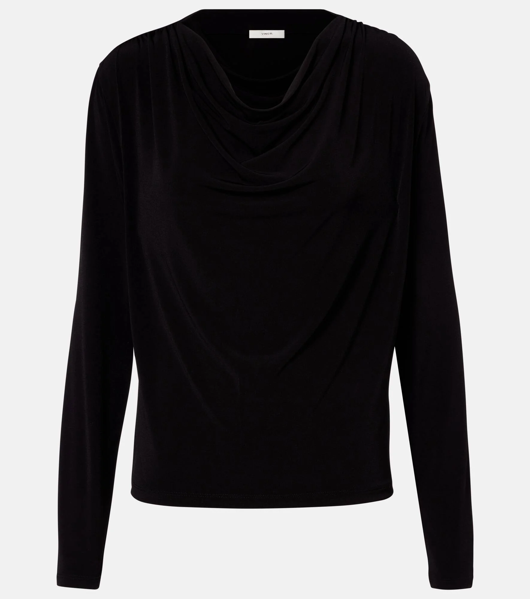 Elevate your daily rotation with elegant staples such as this black top from Vince. In fluid matte jersey, the versatile style features a draped neckline and long sleeves. Product Details - Material: 95% polyester, 5% elastane - Care instructions: machine wash cold - Made in Vietnam - Designer color name: Black - Item color: black - Collar: cowl neck - Item number: P01123940 Size & Fit - Fits large to size - we recommend trying one size smaller - Straight fit - Slightly stretchy fabric - Falls to the hip - The model seen in the picture is 178cm-5'10" and wearing a size XXS