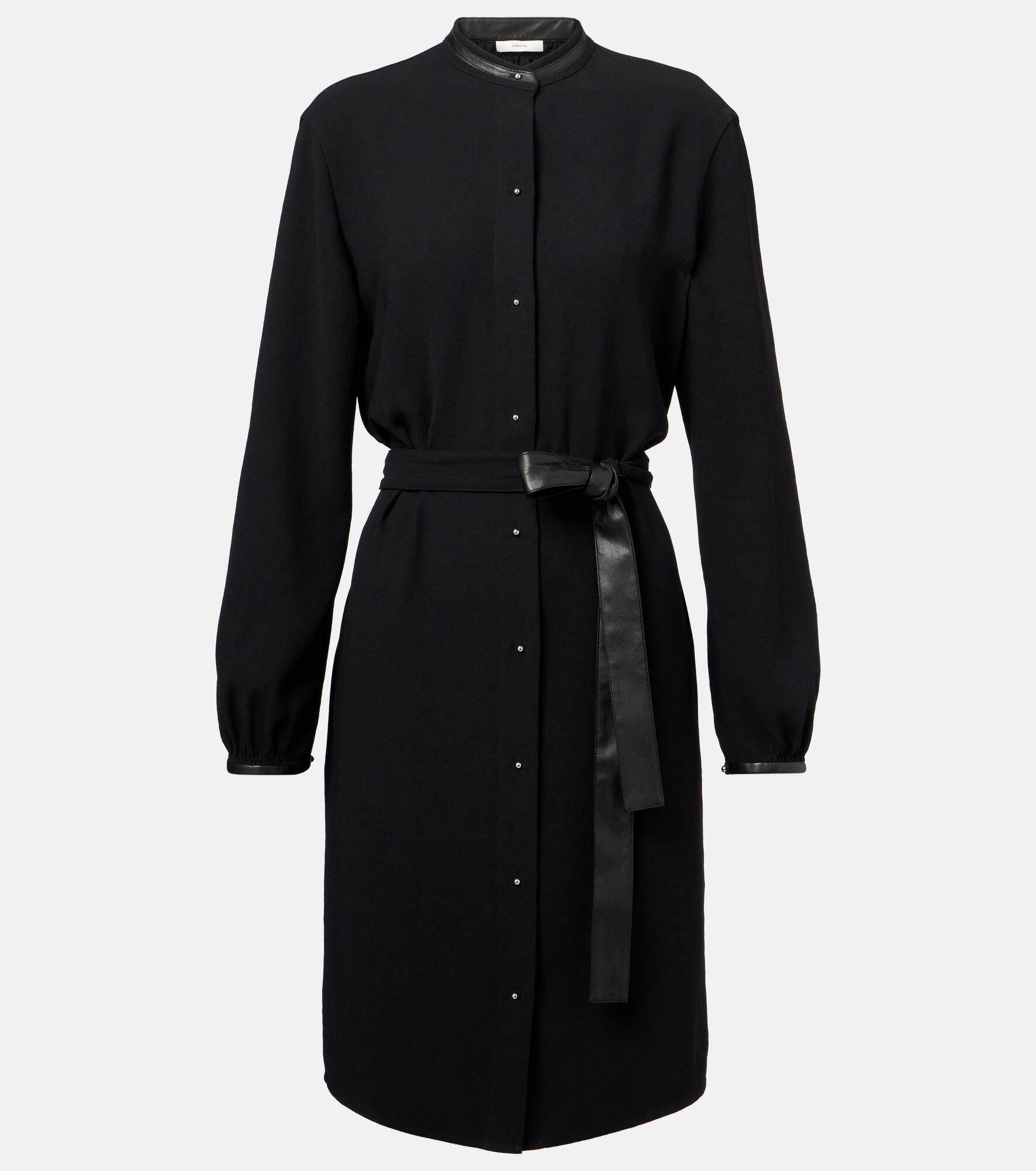 Faux leather-trimmed shirt dress
